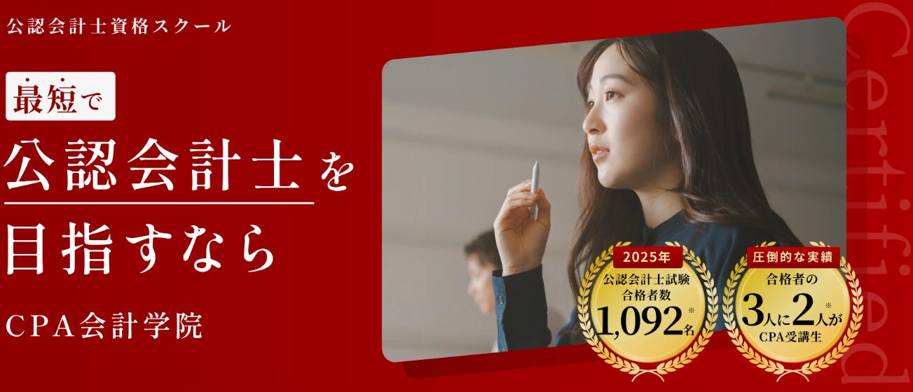 CPA会計学院は、公認会計士試験に特化した資格スクール。